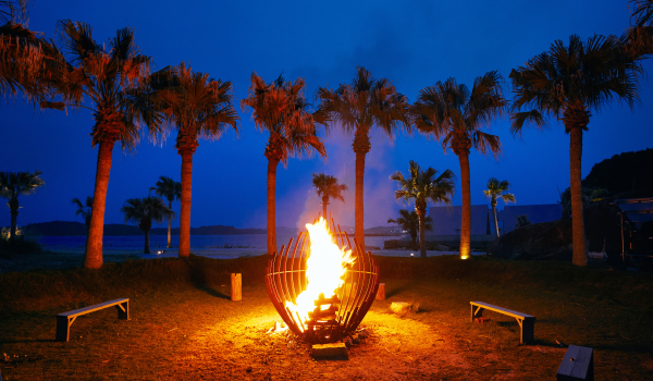 在木頭圍繞的露營焚火台區,每天都有營火。晚餐過後請在營火區度過愉快的時光。